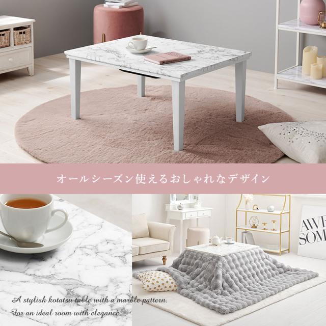 こたつ こたつセット 長方形 こたつテーブル おしゃれ こたつ布団 テーブル セット 一人用 洗える コタツ 白 大理石柄 姫系 かわいい アルラ+ルナ。
