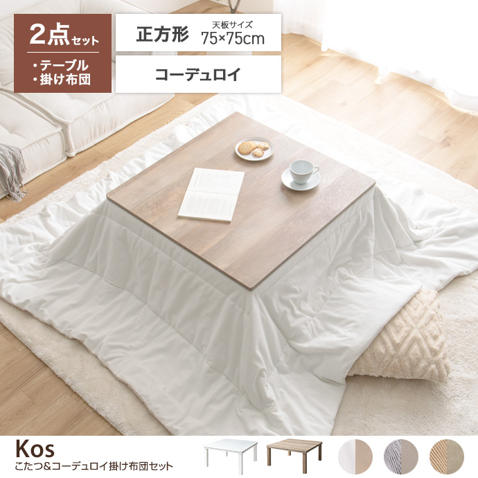 カジュアルこたつ 2点セット 75×60 こたつ + 掛布団 省スペース コタツ こたつセット テーブル こたつテーブル セット 炬燵 火燵コンパクト 一人暮らし 長方形 コーデュロイ ヴィンテージ 北欧 おしゃれ 木目 g350017長方形:天板 75cm×60cmKos こたつ&掛け布団2点。