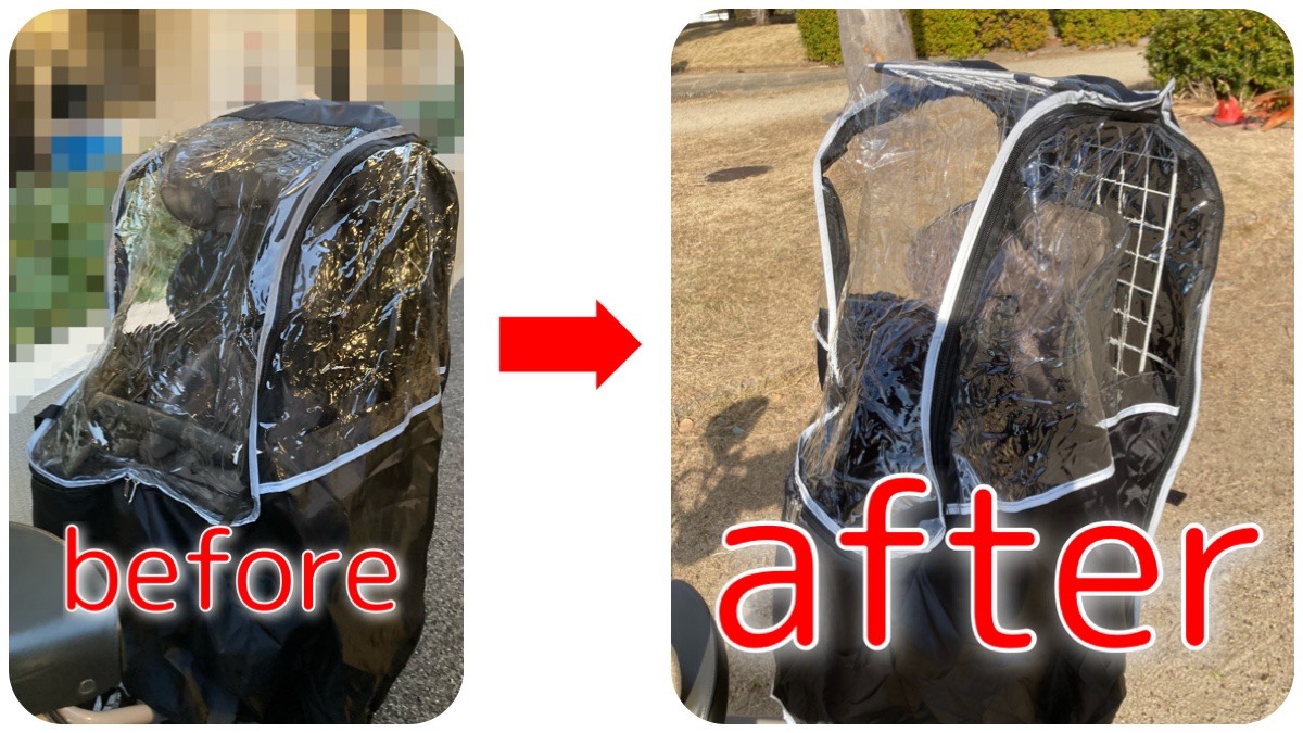 電動自転車のレインカバー改造☆ 面や骨が無くても支える方法!天井を上げる方法!にちごままぶろぐ。