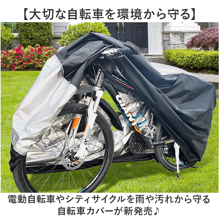 自転車カバー 防塵 通販 丈夫 雨 サイクルカバー 自転車 レインカバー はっ水 撥水 風飛び防止 汚れ防止 電動自転車 カバー 盗難防止 雨よけ風よけ ママチャリ 取付簡単 ロック対応 かご付き自転車 シンプル 折りたたみ自転車 オシャレ おしゃれ:BACKYARD FAMILY通販。