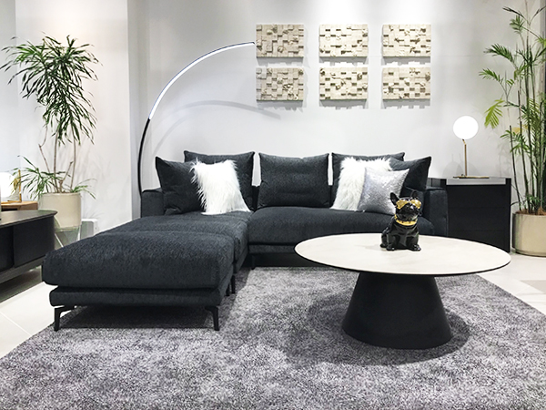 lushroom ソファ 2人掛け 3人掛け ファブリック カウチソファー スツール ネイビー グレー クッション付き 幅185cm –lushroom-ラッシュルーム- 高級感のある家具を開梱設置でお届け。