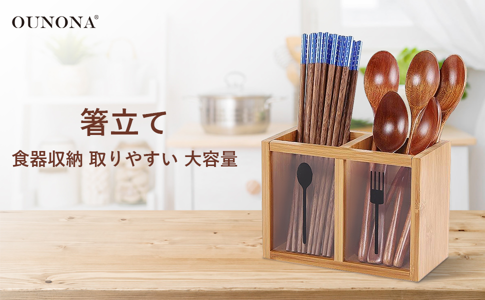 AmazonOUNONA 竹製調理器具ホルダー 箸オーガナイザー キッチンオーガナイザー 高耐久 天然素材使用 スパチュラ トング カトラリー収納 箸立て オンライン通販。