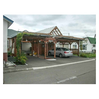 オリジナル木製カーポート3台用 通路ルーフ- トラディショナル - ガレージ - 他の地域 - トカチのカタチ 庭十勝Houzzハウズ。