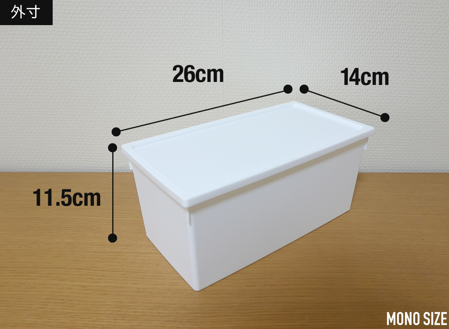 100均「フタ付プラBOX L型」の商品情報とサイズ・収納例。セリアで販売 4977425201236。