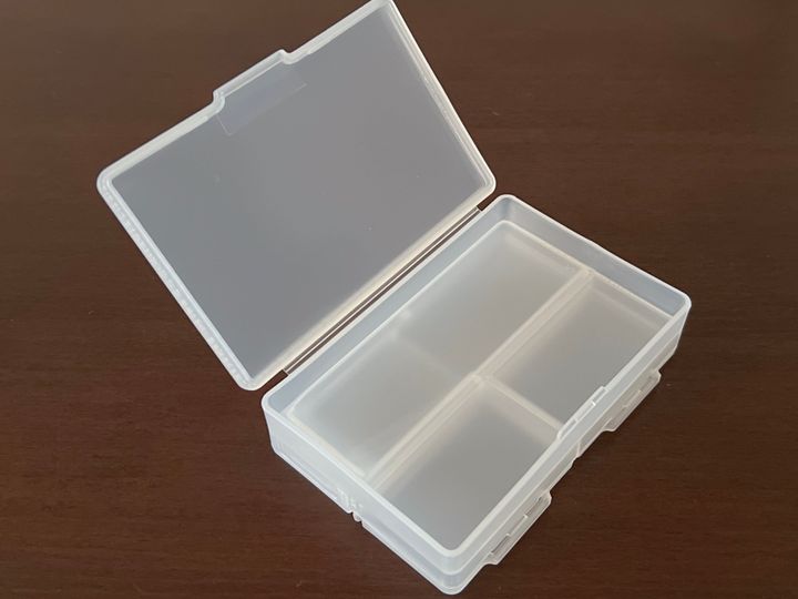 レビュー 100均 セリア フタがとまるケース Sサイズ ホワイト 後ろにパタッと落ちずに途中で止まるので、出し入れに便利かも!ZERO-NETAⅡ。