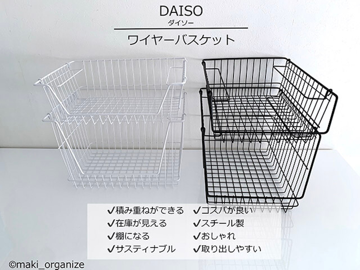 100均ダイソーで販売している収納バスケットの商品一覧 DAISO。