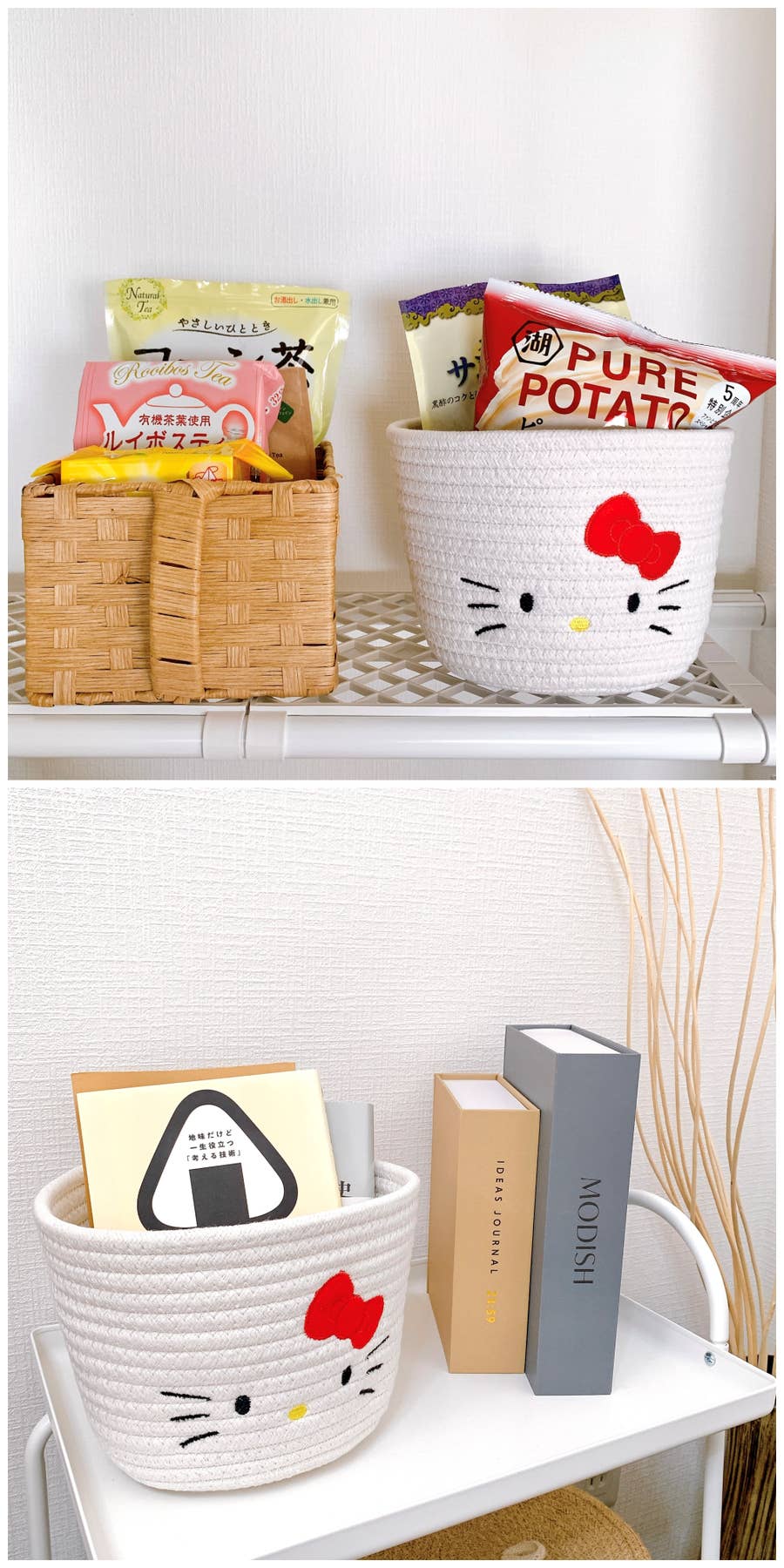 ダイソー×サンリオ 見つけた瞬間、即レジした!コロンと可愛い「キティちゃんの収納バスケット」好きすぎて全部屋に置きたいよ〜! 購入レビュー。