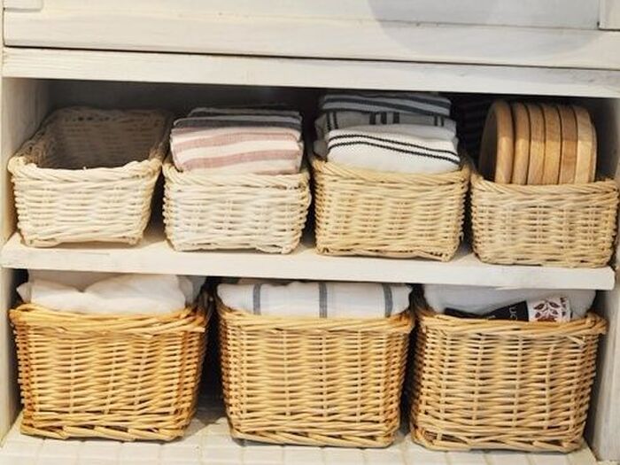 ダイソーの「かご」を使った収納アイデア。インテリアにも馴染むおしゃれなアイテムfolk。