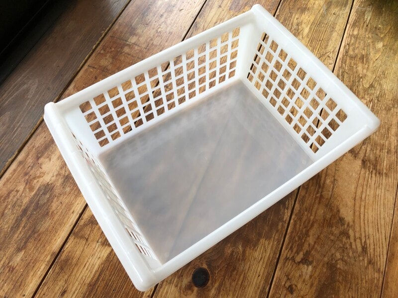 A4深型バスケットとスッキリ収納トレーを使って食器用水切りかごを作る - 100均・ダイソ。