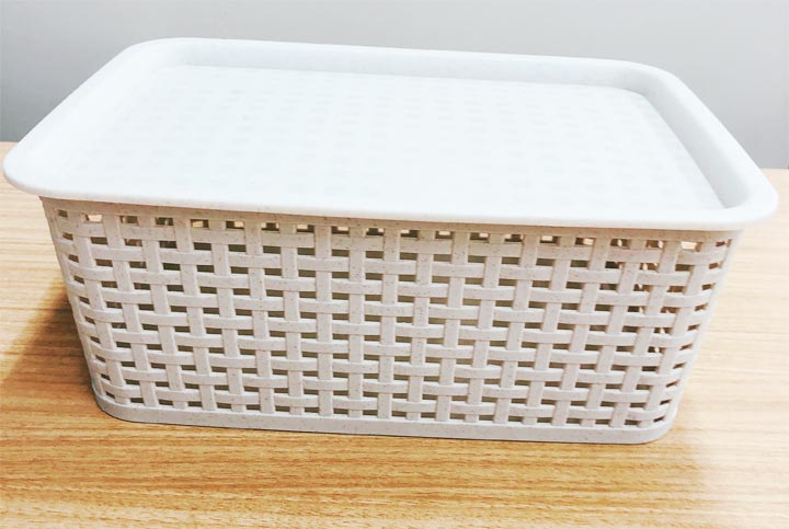 便利な 収納 バスケット ボックス フェイク 籐 収納 バスケット プラスチック 引き出し 雑貨 スナック 本棚 ダイソーで。