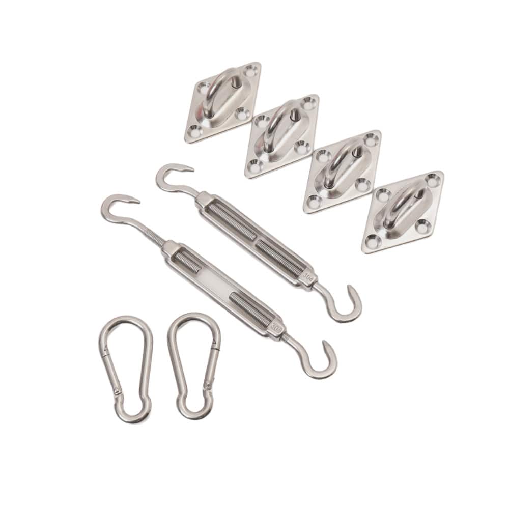 5%OFFクーポン有り サンシェード セイル 取り付け 金具 316ステンレス 日よけ シェード シェードセイル 取付金具セット 屋外 ベランダ大型 フック オーニング 雨除けシェード ターンバックル カラビナ パッドアイ アイプレートmamago。
