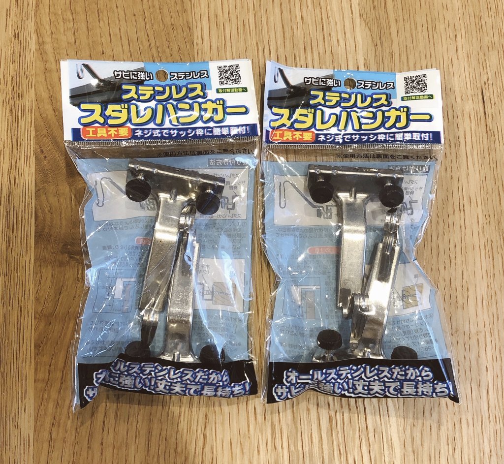 日よけシェード サンシェード 取り付け金具 サッシ用 オールステンレス すだれ掛け 2個入り C-F-1。