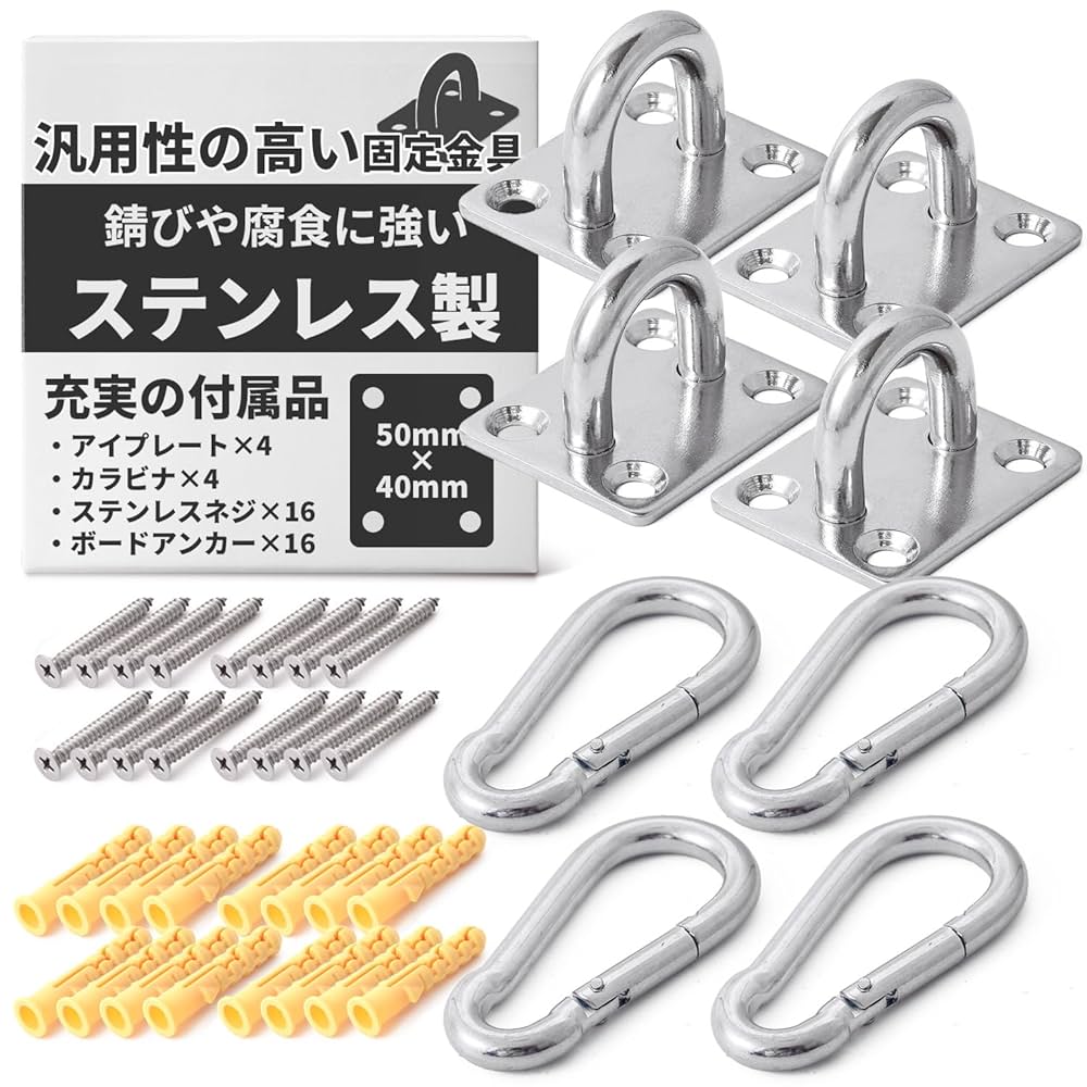 楽天市場 サンシェード 取り付け金具 24個入 シェード 取付金具 アイプレート ステンレス パッドアイ カラビナ フック カラビナ ネジ セットステンレス製 固定キット 目隠し 目かくし 紫外線 UV対策 省エネ 節約 節電 よしず 洋風 タープ おしゃれ ベランダ スクリーン。