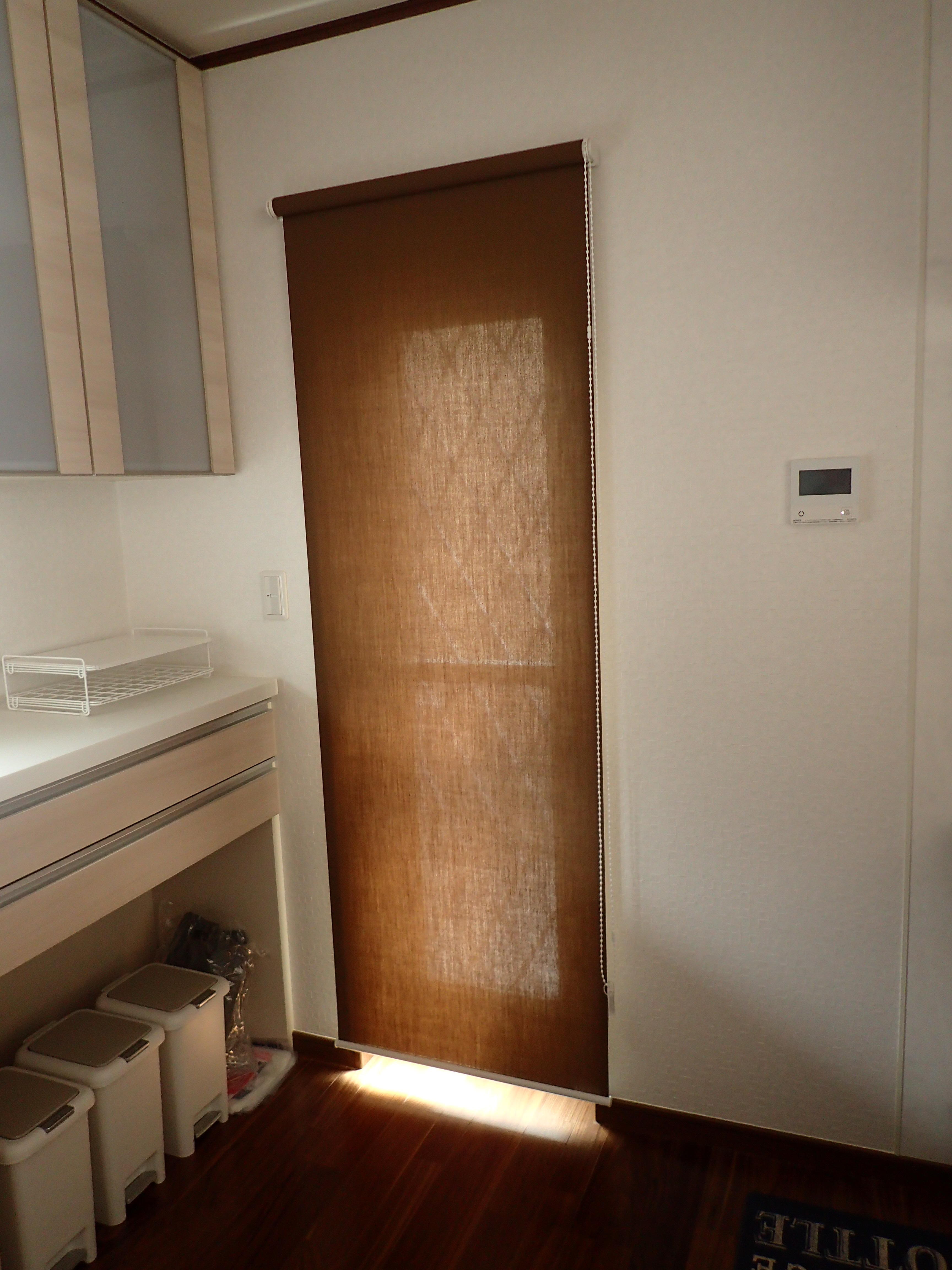 勝手口にロールスクリーンカーテンコール徳島市のオーダーカーテン専門店。