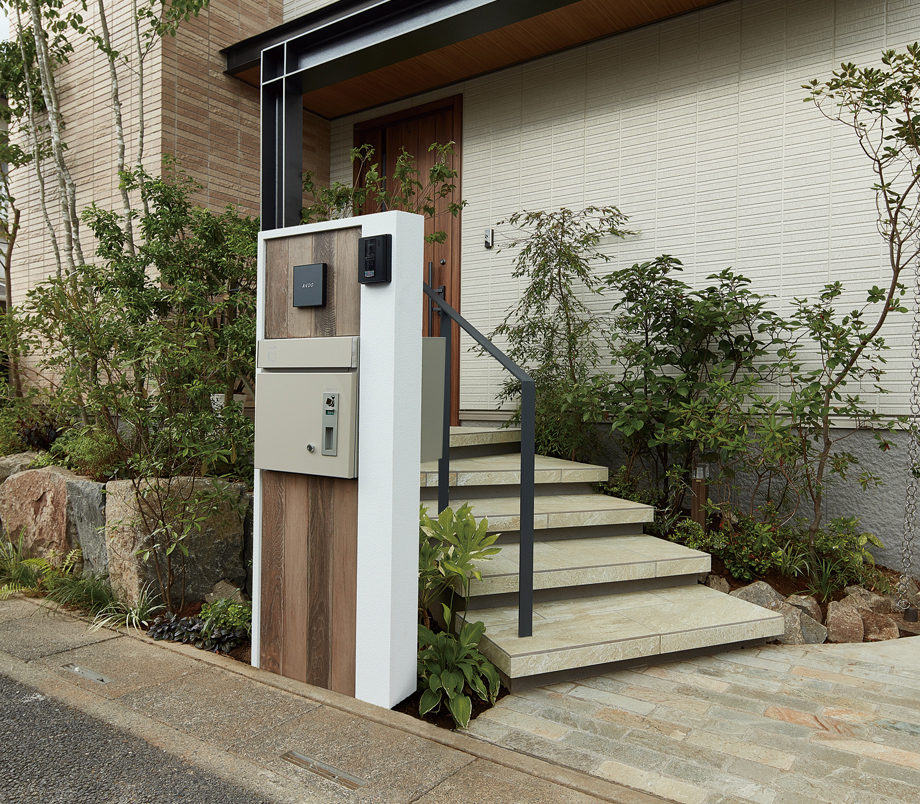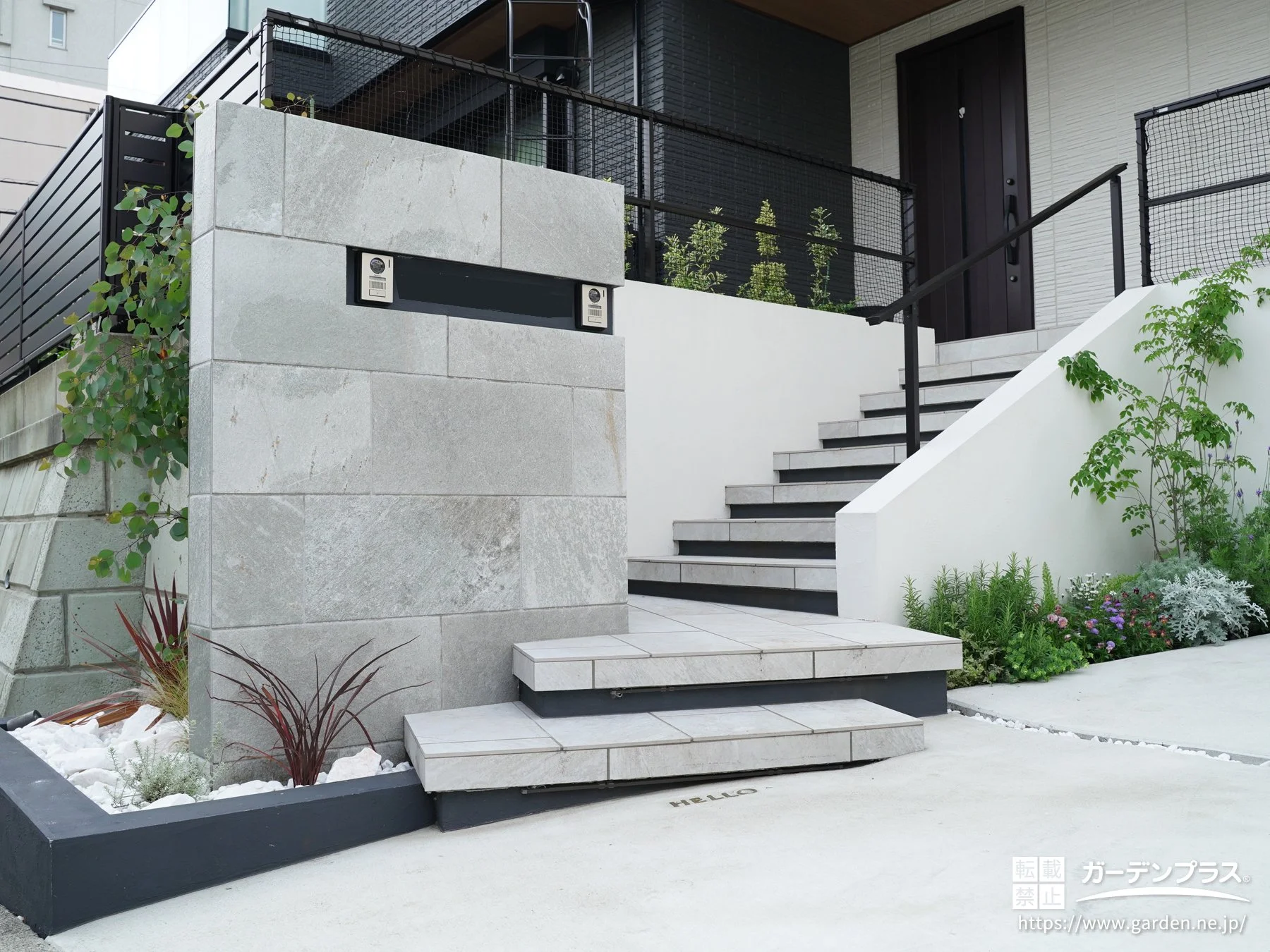 高低差のある邸宅はアプローチ階段を一つの見せ場に。名古屋市瑞穂区の新築外構ALLGREEN - 庭・エクステリア・新築外構の専門店。