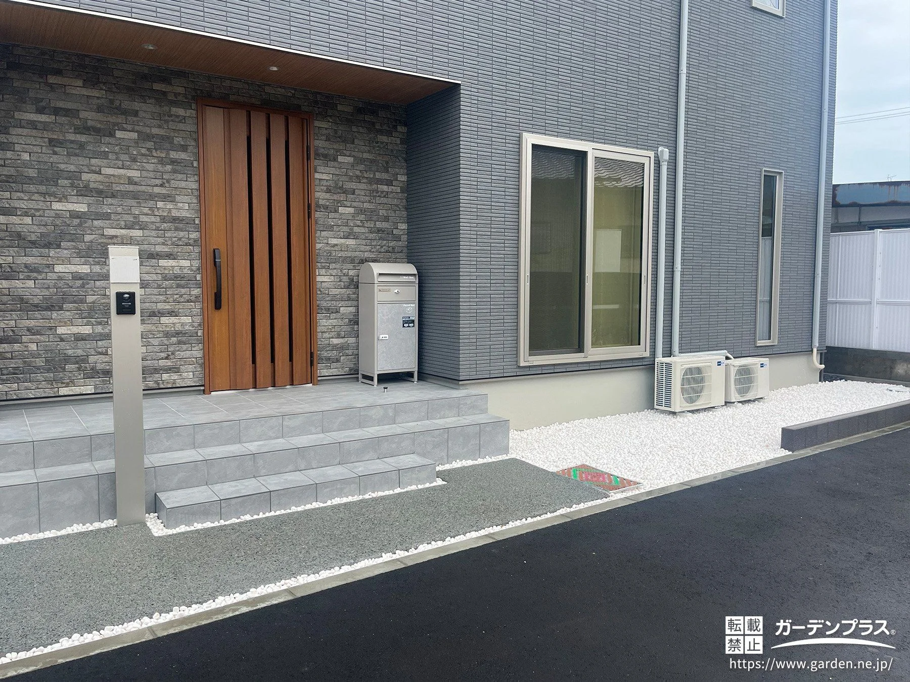 斜めに配置されたアプローチステップがオシャレな新築外構No.16715新築外構一式の施工例外構工事のガーデンプラス。