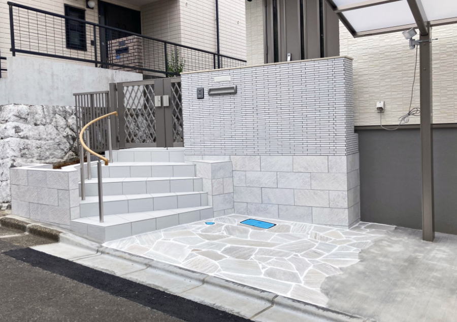 柏市のエクステリア工事は玄関の階段を作り直しています。外構エクステリアを柏市・流山市・印西市などでお悩みならガーデン:タイム。