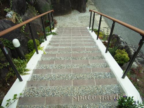 施工例「エクステリアデザイン 高低差のある階段の外構」兵庫県姫路市。