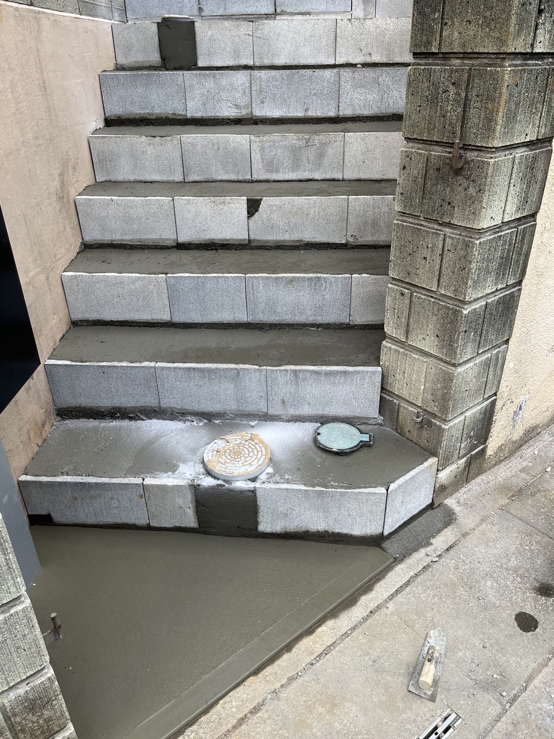 階段と土間下地。2件のアプローチ工事。外構施工中。
