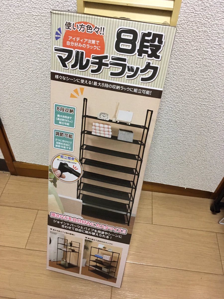 ドン・キホーテ で買った7段マルチシェルフ。なんと千円。安い。組立も簡単で工具いらず 腕力はいるかも で、思ったよりカッチリしています。こういうのって揺らすとグラグラしがちだけど、そういうこともなく。 棚板が板じゃなく不織布なので、重い物や安定を要する物は。