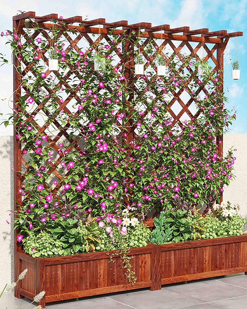 Caroeas 目隠しフェンス ボーダーフェンス 屋外 フラワートレリス 垣 間仕切り ルーバー エクステリア 花壇 ラティス ガーデン ガーデニング。