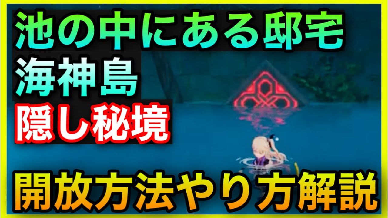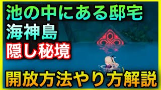 原神 海神島の水月池にある新秘境「池の中にある邸宅」の開放方法 攻略解説。