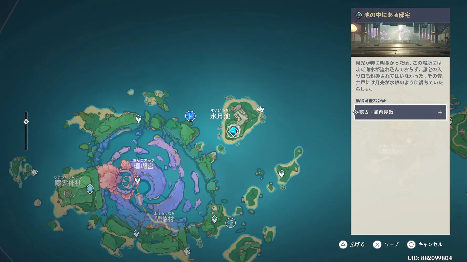 原神 池の中にある邸宅の開放方法を徹底解説!水月池の水位の抜き方も解説しています。