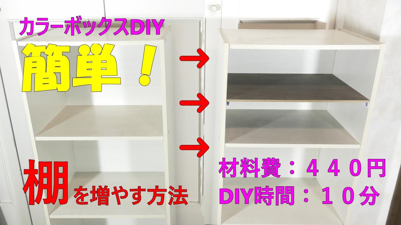 カラーボックスDIY DIY100均 簡単に棚を追加!収納アップ!easy shelf making 棚作り 収納棚DIY100均 カラーボックスDIY。