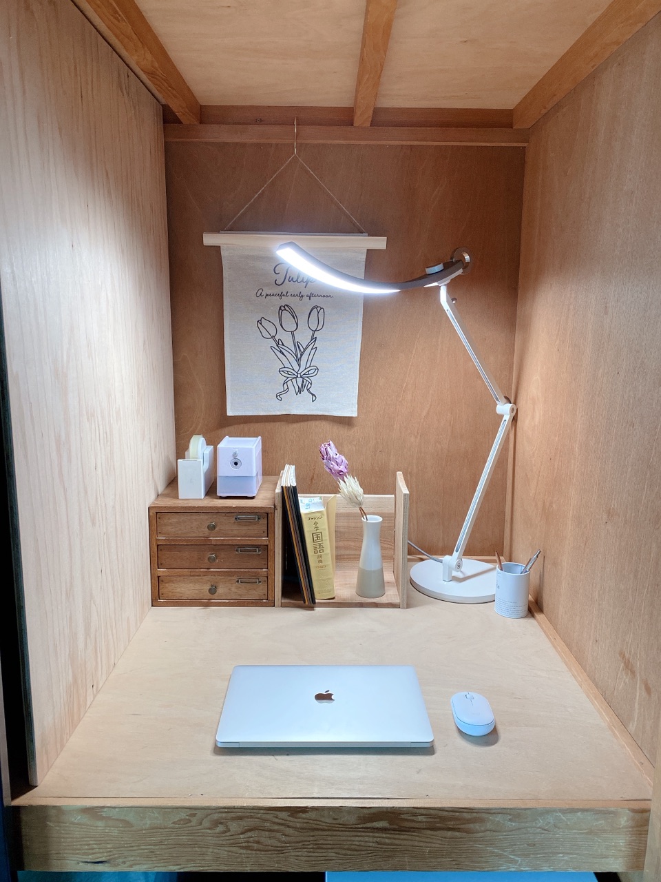 押入れデスクがお気に入り。 目の前が壁だから、余計なノイズがない。 ランタンのあかりが優しくて、 ボケーっとしたいときに最適。 ----------最後まで読んで下さりありがとうございます。 紹介しているアイテムや暮らしのあれこれをプロフィール欄のURL ブログや楽天。