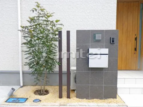 玄関まわり 門柱 植栽 角柱 砂利 照明の外構施工例 現場番号:14159- ファミリー庭園兵庫店。