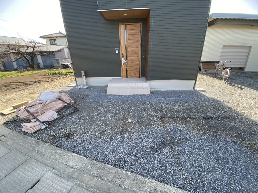 駐車場から庭まわりまでを砂利敷きでお手入れを楽に 須賀川市 W様邸。