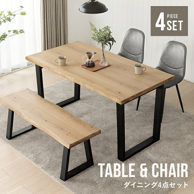 ダイニングテーブルセット 4人掛け 150×85 ベンチ チェア ダイニングテーブル ダイニングセット ダイニング テーブル チェアセット オークアカシア 耳付き 高級感 木製 アンティーク風 北欧風 おしゃれ 4人用 モダン ダイニングテーブル セット ベンチセット 木製 4人。