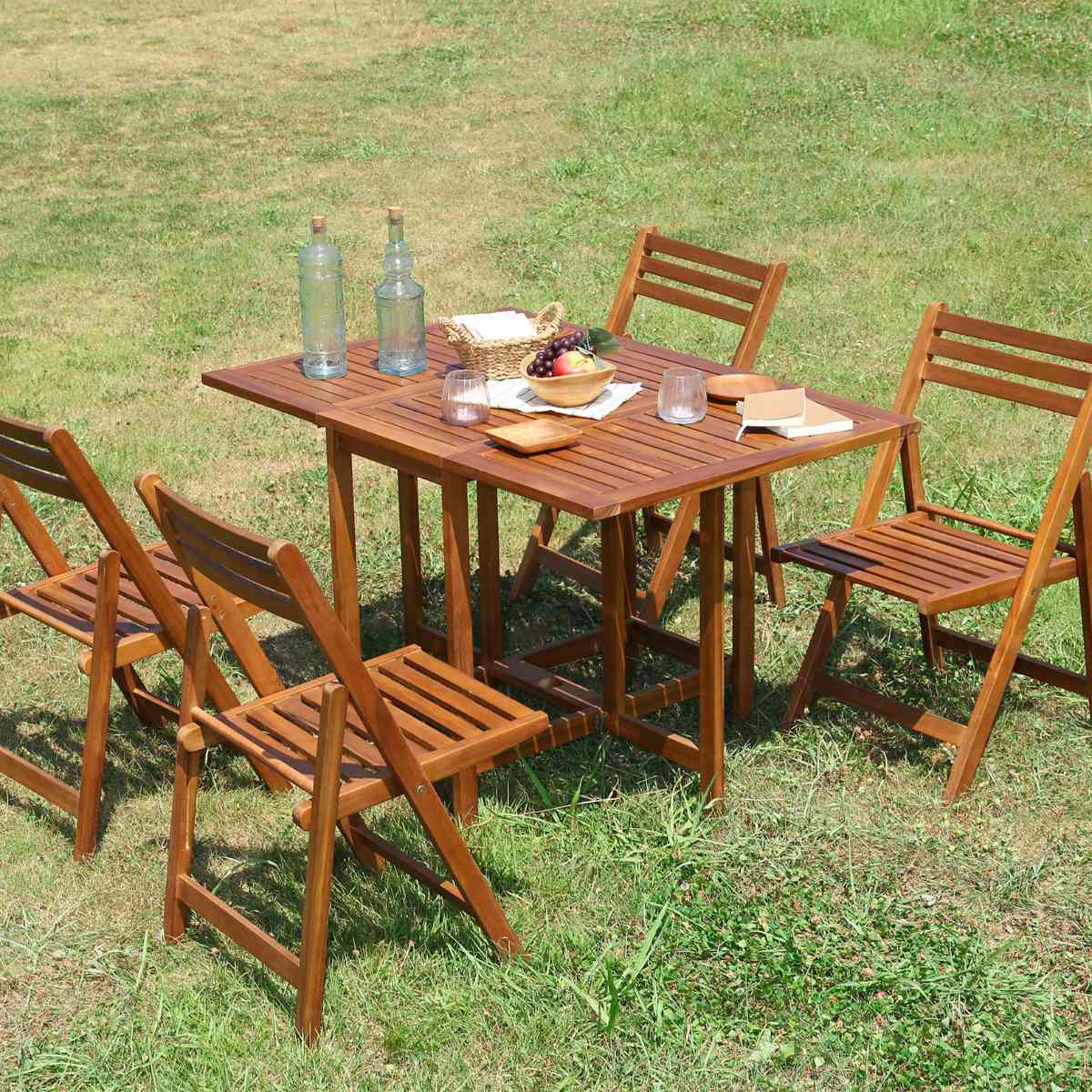 ガーデンテーブルセット 天然木アカシア材使用 ガーデンチェア4脚の5点セット問屋卸し格安通販モモダ家具。