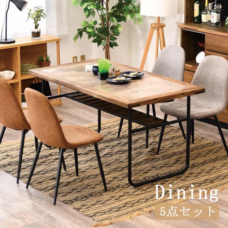 7%クーポン 10日まで★ ダイニングセット 5点セット 幅120 ダイニングテーブルセット テーブル セット 4人用 リビング ダイニング 天然木無垢材 アカシア ヴィンテージ風 アイアン 食卓テーブル カフェテーブル 長方形 カフェ風 北欧 おしゃれ アクセル&デューティー家具通販。