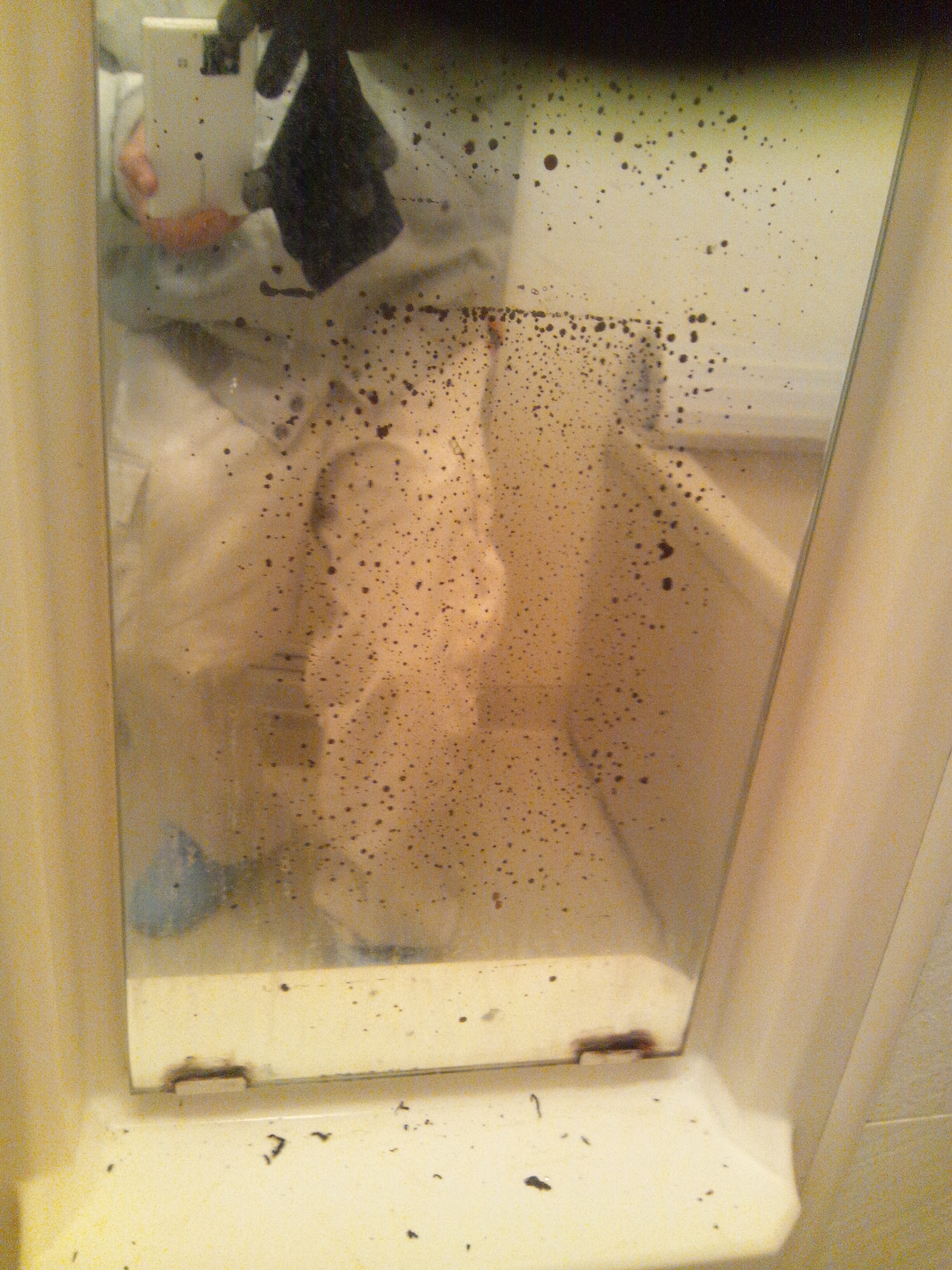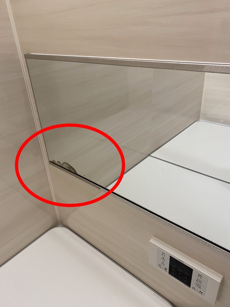 風呂場の鏡の黒い汚れ カビではなくシケ!できたら隠そう。