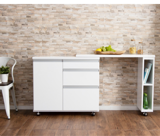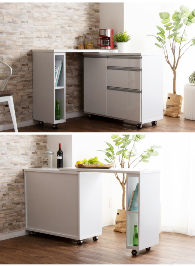 楽天市場 キッチンカウンター 伸長式 カウンターテーブル レンジ台 完成品 106〜180 キャスター付き デスク レンジボード キッチン収納食器収納 伸縮 引き出し ホワイト 艶あり 清潔感 モダン おしゃれ 送料無料 大型便 spp : IKIKAGU イキカグ。