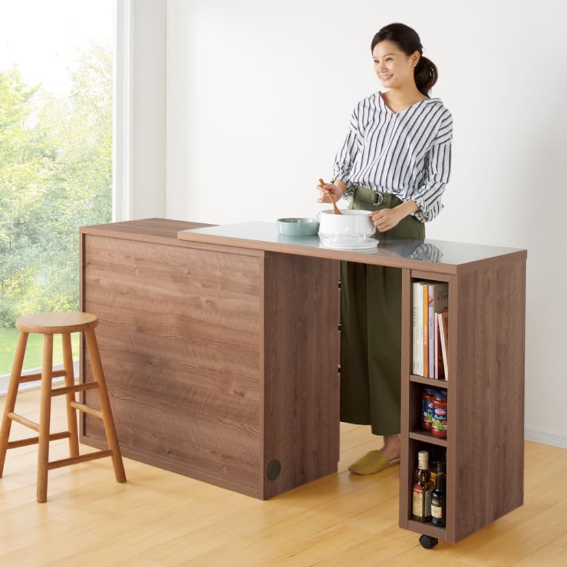 幅120 伸長式 キッチンカウンター テーブル キャスター付き 日本製 大川家具 完成品超大型商品24900062—公式 タンスのゲン本店 - 家具・インテリアのネット通販。