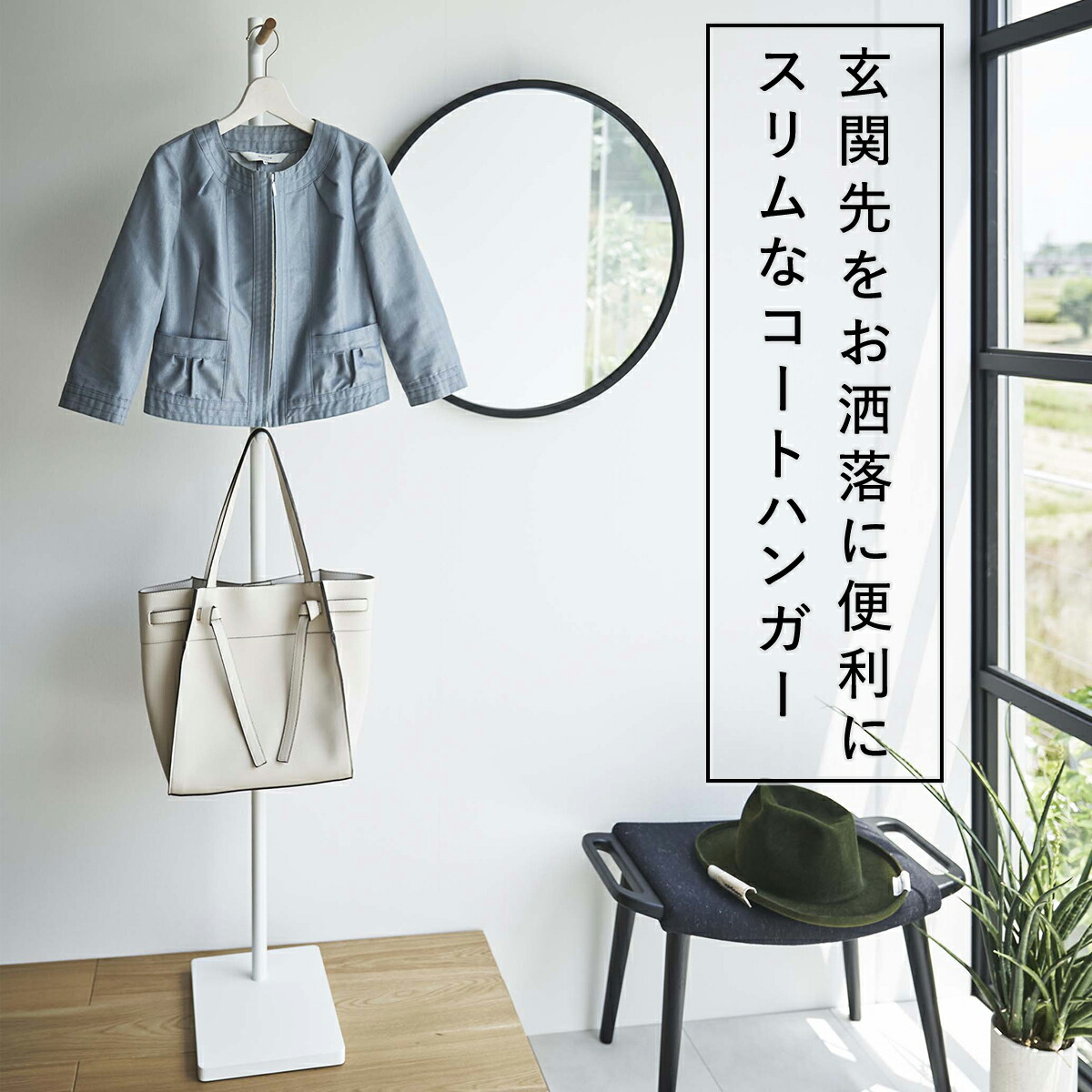 山崎実業 yamazakitower エントランスコートハンガー タワーエントランス コート ハンガー 玄関先 オフィス スリム コート上着 バッグ フック 衣類掛け 天然木 おしゃれ 鞄 黒 白 ホワイト ブラック yamazaki towerシリーズ山崎実業店舗什器・店舗備品の。