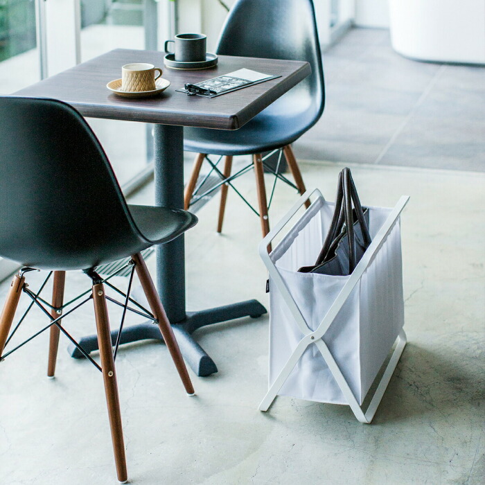 山崎実業 yamazaki tower 手荷物収納ボックス タワーカフェ 荷物置き おしゃれ シンブル 折りたたみ カゴ 玄関 収納ランドリーバスケット スリム 布 ホワイト ブラック YAMAZAKI タワーシリーズ 3544 3545山崎実業店舗什器・店舗備品のハンガー&インテリア。
