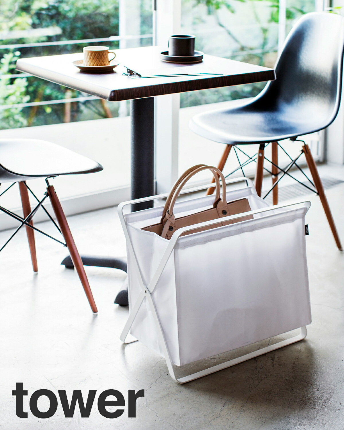カバン置き ラック オフィス 玄関 鞄置き場 鞄置き かご カゴ バスケット 山崎実業 yamazaki tower 手荷物収納ボックス タワーカフェ 荷物置き おしゃれ シンブル 折りたたみ カゴ 玄関 収納 ランドリー バスケット スリム 布 ホワイト ブラック YAMAZAKI タワー。