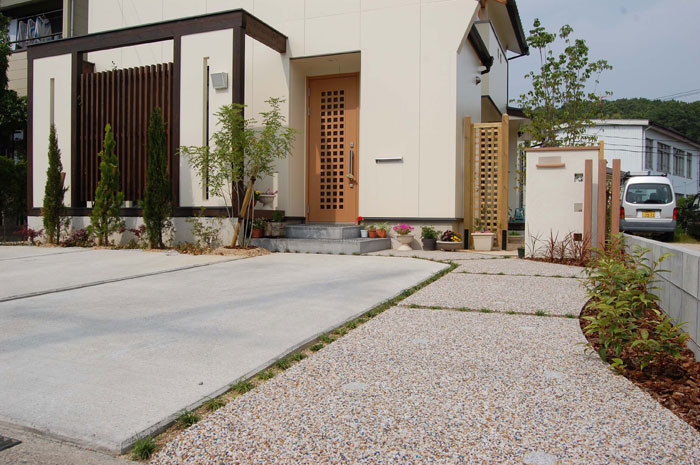 コンクリートと砂利敷きの駐車場・4施工例写真集外構・庭・エクステリアの北ガーデンプロデュース西宮・宝塚・尼崎。