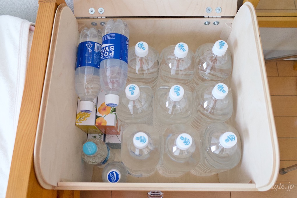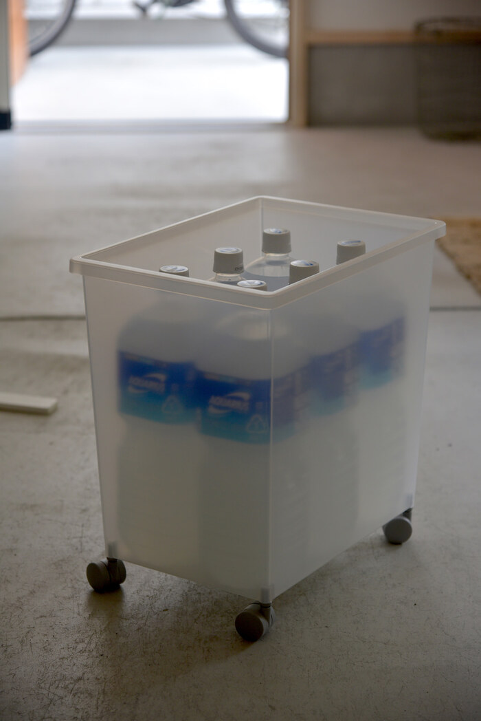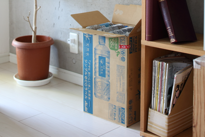 狭い部屋でどうしてる?ミネラルウォーターのストック収納方法ミニマリストくしな。