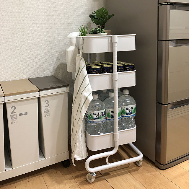 水や飲料ストックどこに置く?ペットボトルを場所別に管理する方法と収納アイデアをご紹介 無印・tower 暮らしEDIT きづきともこ。