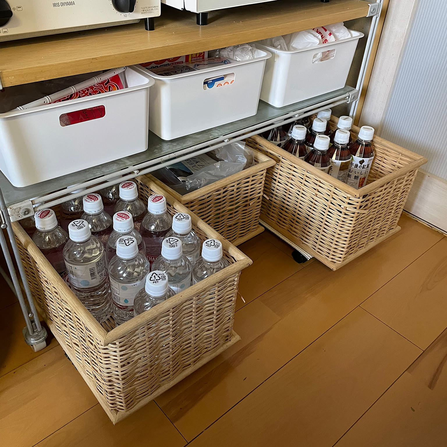 備蓄やまとめ買い対策に。箱買いペットボトルの収納アイデアキナリノ。