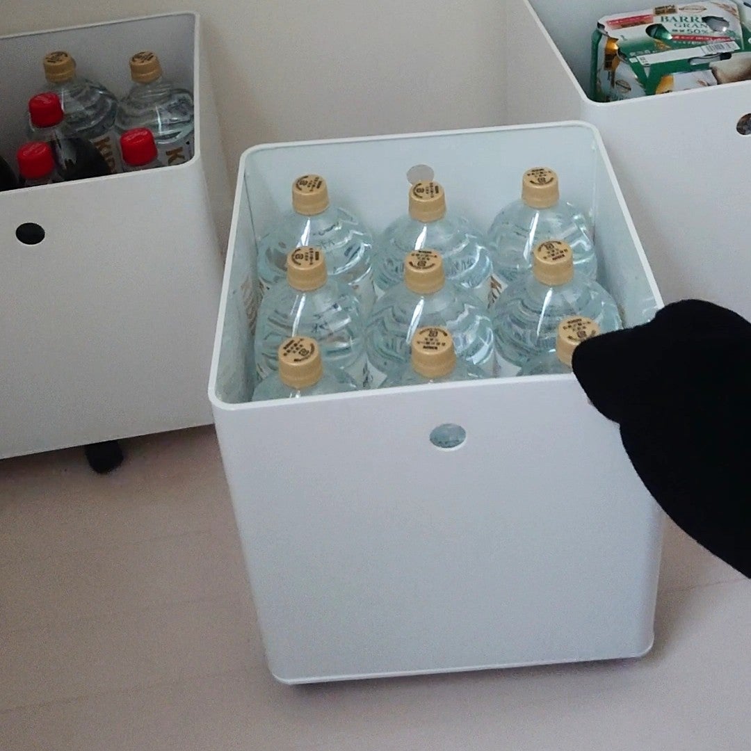 箱買いペットボトルのおしゃれな収納アイデア。無印良品とIKEAでストック収納。