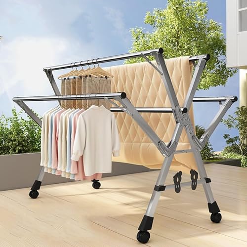 おしゃれ 物干し台 屋外 風に強い 物干しラック アルミ 洗濯物干し ベランダ 室内物干し 物干し キャスター付き株式会社錦倒れない 錆びないコンパクト収納 室内物干し 物干し台 洗濯用品 屋外 外風に強い ベランダ物干し 多機能物干し台 布団干し 物干しスタンド 伸縮。