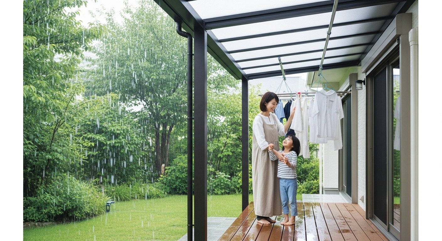 梅雨入り前に備えよう!雨でも快適なお洗濯物干し場 - エクステリアのある暮らしブログ。