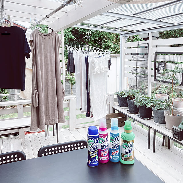 ウッドデッキ 洗濯物干しスペースのおしゃれなアレンジ・飾り方のインテリア実例RoomClip ルームクリップ。