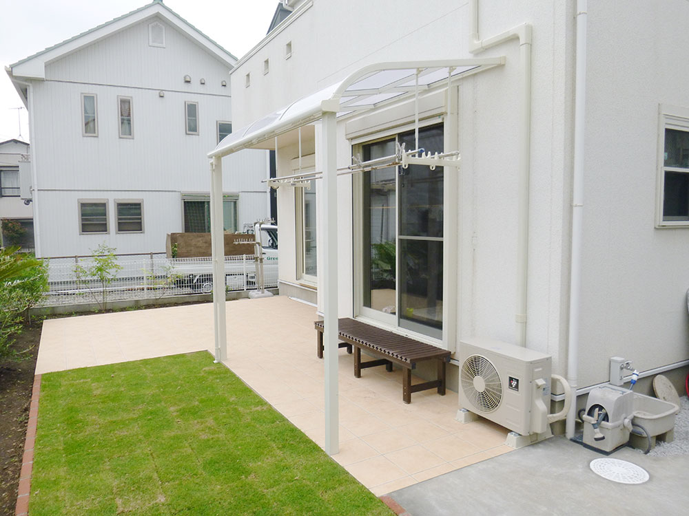 お庭でお洗濯物干し ~テラス屋根&テラス囲いで雨・花粉対策グリーンケア。