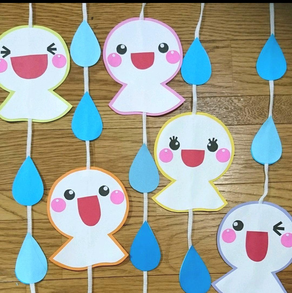 てるてるぼうず てるてる坊主 壁面飾り 画用紙 ガーランド 保育教材 保育園 幼稚園 ウォールステッカー・ウォールデコ Ruu 通販15905104Creema クリーマ。
